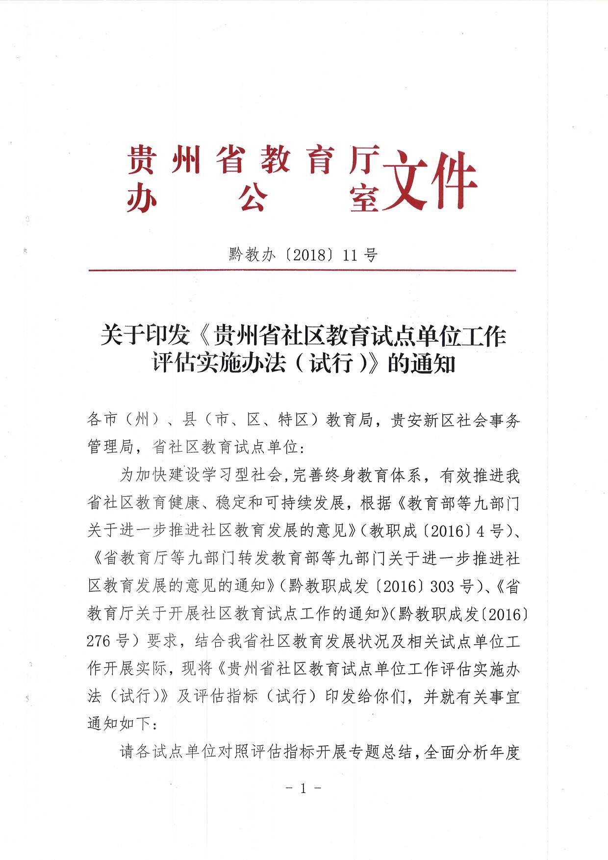 关于印发《贵州省社区教育试点单位工作评估实施办法(试行)》的通知