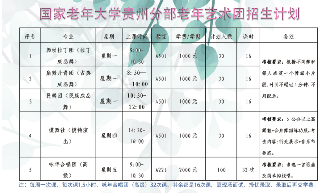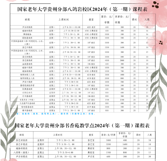 国家老年大学(常规班、老年艺术团)、贵州开放大学(夜校)课程收费标准公示(2024年第一期)