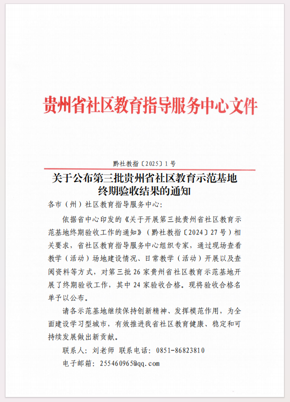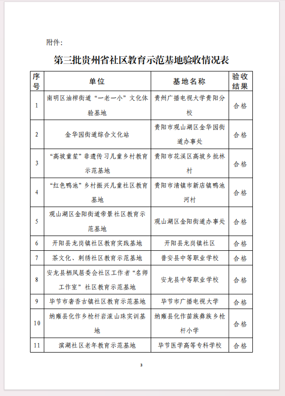 关于公布第三批贵州省社区教育示范基地终期验收结果的通知