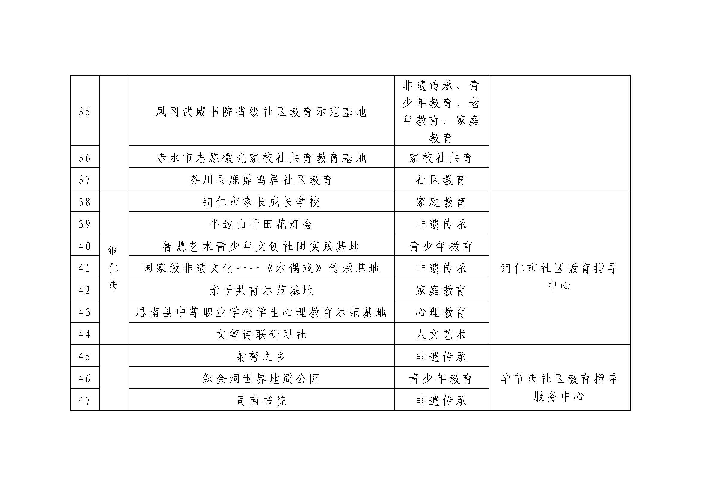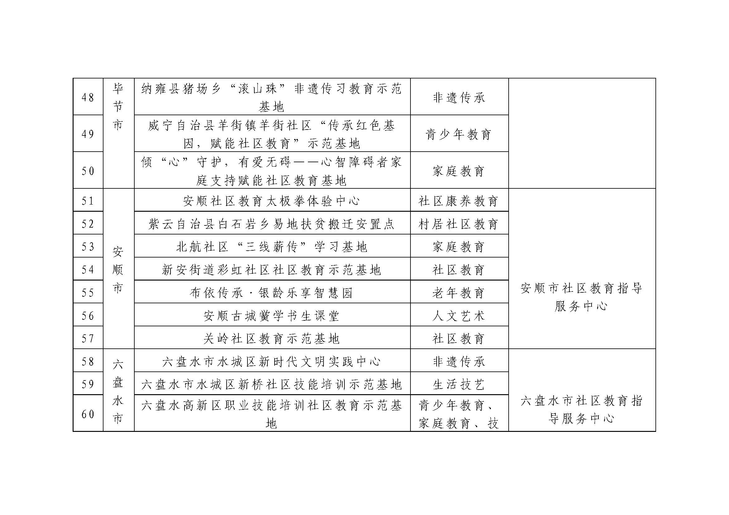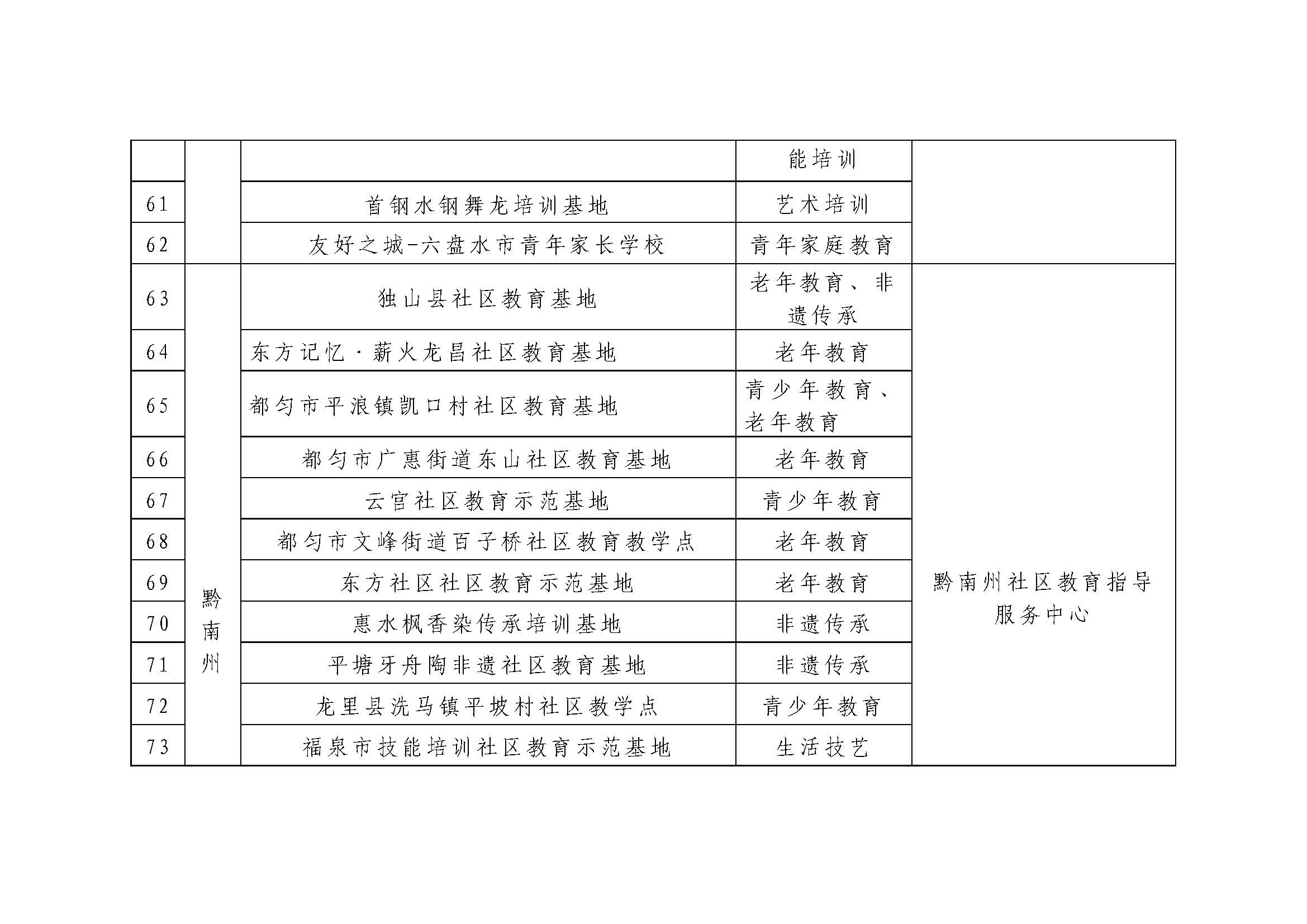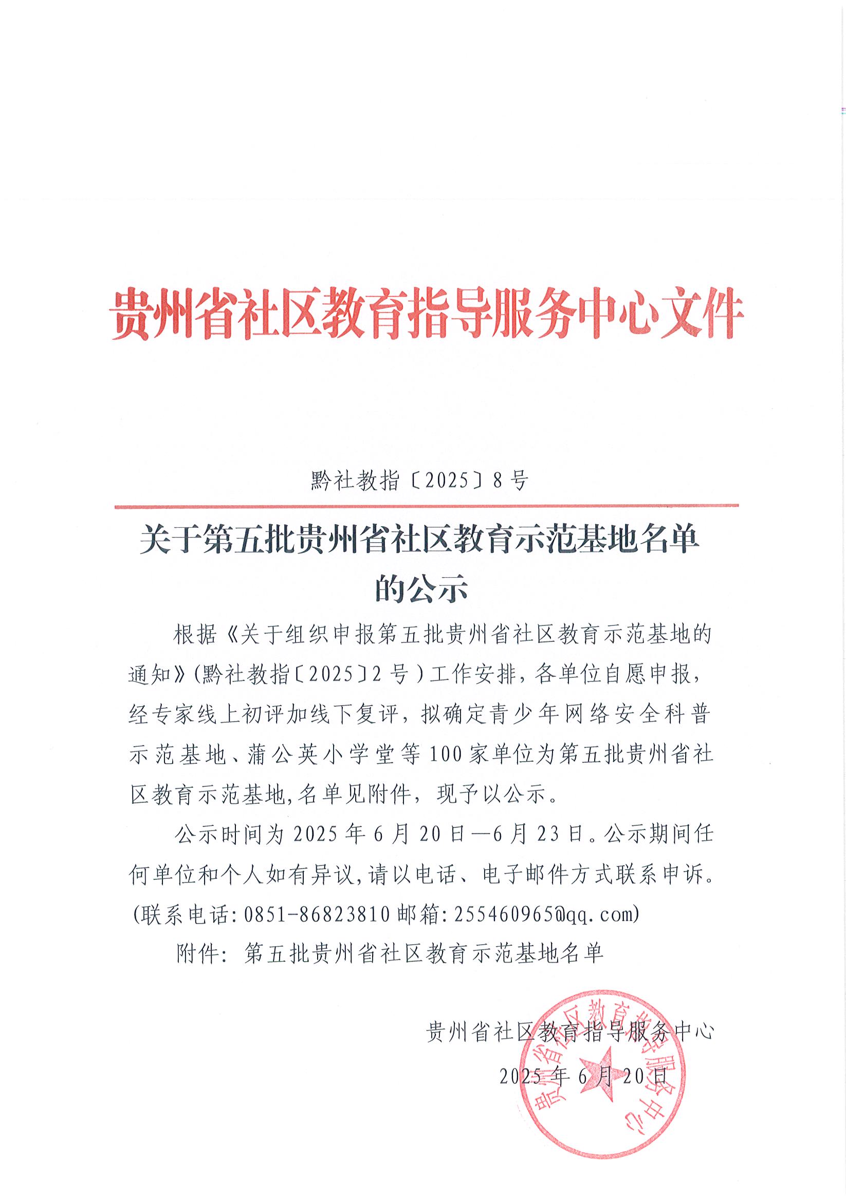 关于第五批贵州省社区教育示范基地名单的公示