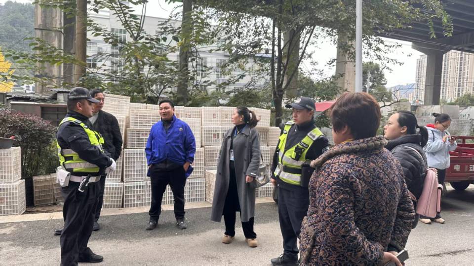 联同交警对占用小区外部通道店家打招呼