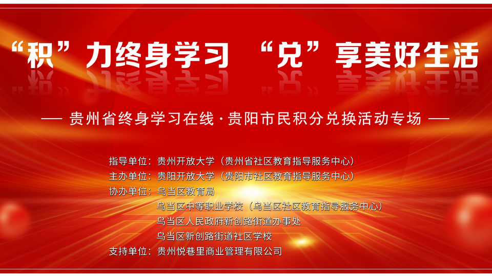 “积”力终身学习 “兑”享美好生活——贵州省终身学习在线贵阳市民积分兑换活动专场“积”力终身学习 “兑”享美好生活——贵州省终身学习在线贵阳市民积分兑换活动专场
